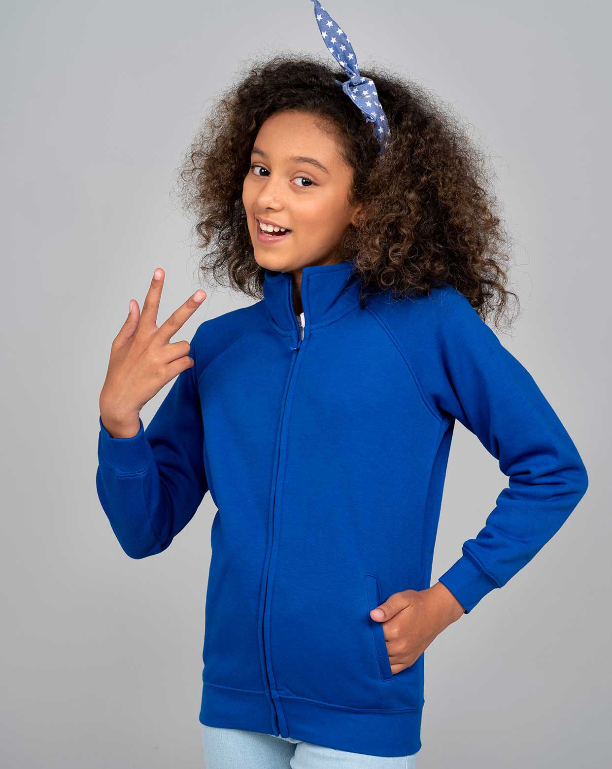 Sweatshirt para rapazes com gola alta e sem capuz, com bolsos laterais e fecho invisível inteiro. Disponível em 7 cores e do tamanho de 1/2 a 12/14.