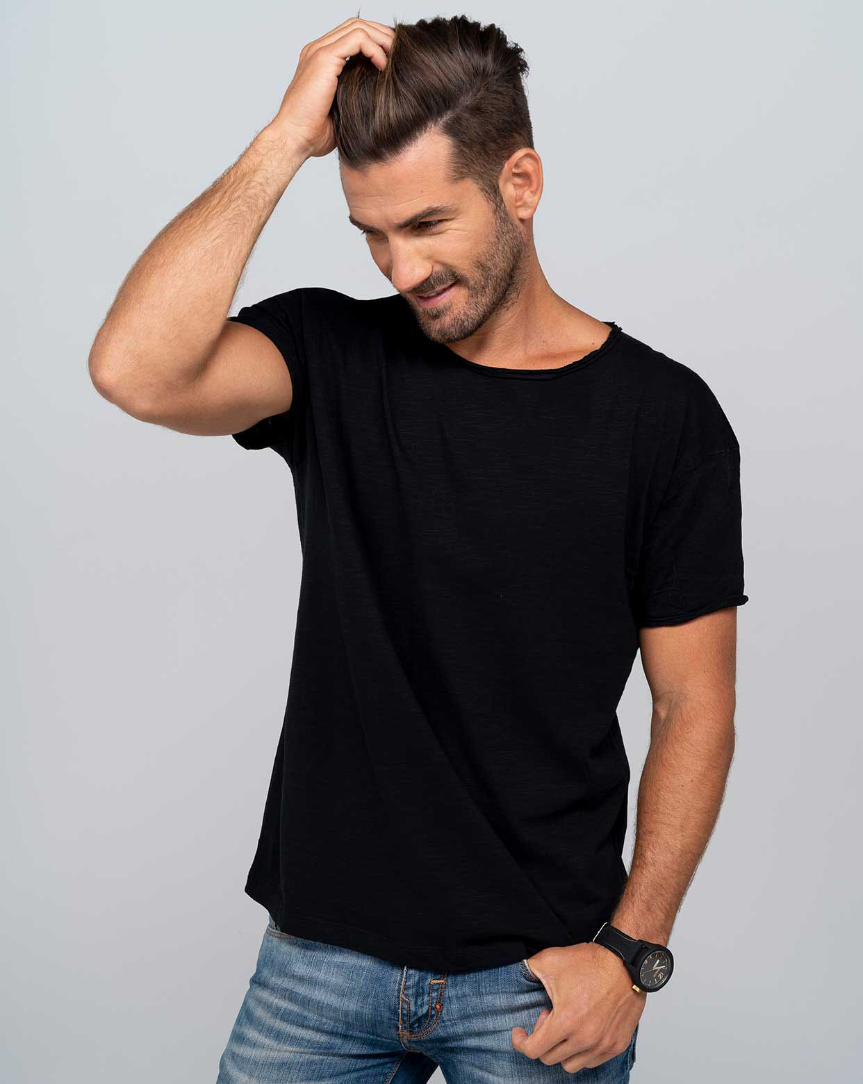 T-shirt básica para homem com manga curta, 100% algodão, mangas e gola sem cobertura e rótulo amovível. Disponível em preto e branco. Esta camisa é semelhante ao URBAN SEA MAN (REF: TSSEA) mas em malha slub.
